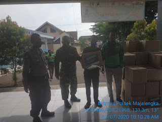 KORAN CIREBON (Majalengka ) Jajaran Polsek Majalengka Kota Polres Majalengka Polda Jabar Bersama Koramil Majalengka melakukan pengamanan dan pengawalan pendistribusian bantuan sosial Tahap II Gubernur Jawa Barat untuk warga masyarakat yang terdampak Covid-19 di wilayah Kecamatan Majalengka , Kabupaten Majalengka, Sabtu (11/07/2020).
