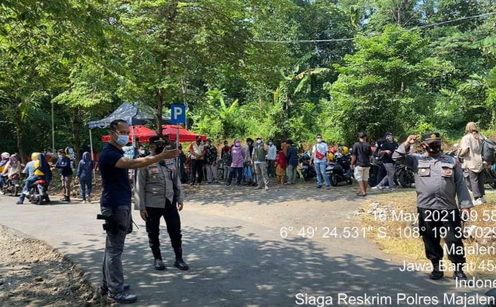 Koran Cirebon ( Majalengka ), Sebagai upaya memutus dan mencegah penularan Covid-19, Kasat Binmas Polres Majalengka AKP Rudy Djunardi bersama Kasat Reskrim AKP Siswo DC Tarigan mendatangi sejumlah tempat wisata di wilayah Kecamatan Sukahaji salah satunya Obyek Wisata Situ Cipanten. Senin (17/5/2021).