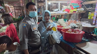 Kali ini Bripka Yanto Bhabinkamtibmas Polsek Kapetakan Polres Ciko melakukan pengecekan dengan menyasar Para Pedagang kebutuhan pokok di pasar Celancang Wilkum Polsek Kapetakan.
